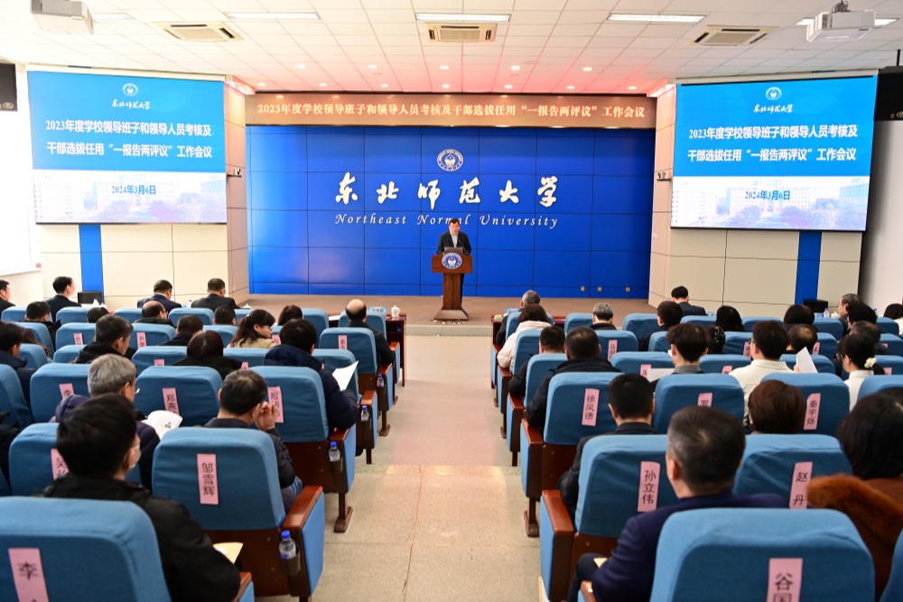 3月6日,学校在学生就业指导服务中心三楼报告厅召开了2023年度学校领导班子和领导人员考核及干部选拔任用“一报告两评议”工作会议。教育部直属高校党建工作联络员韩晓峰出席会议。 会上,校长、党委副书记徐海阳代表学校党委和行政班子述职,同时作个人述职述廉报告。徐海阳还代表党委作了年度干部选拔任用专题报告。随后,领导班子其他成员依次作了个人述职述廉报告。 学校党委委员、纪委委员,机关及群团组织副处级以上干部,...