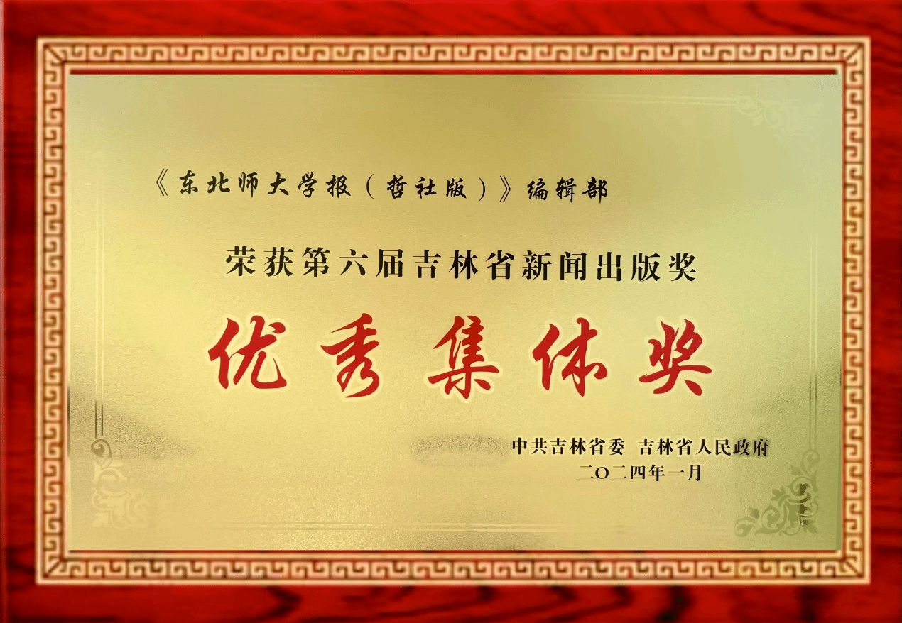 近日,吉林省人民政府发布关于第六届吉林省新闻出版奖的表彰决定,表彰了全省新闻出版精品、先进集体及个人。《东北师大学报(哲学社会科学版)》编辑部荣获“第六届吉林省新闻出版奖优秀集体奖”。 本次表彰共授予37种出版物吉林省新闻出版奖精品奖,授予6个集体吉林省新闻出版奖优秀集体奖,授予26名个人吉林省新闻出版奖优秀人物奖。 吉林省新闻出版奖是省政府设立的全省新闻出版最高奖项,表彰在全省新闻出版领域做出突出贡献的集体、...