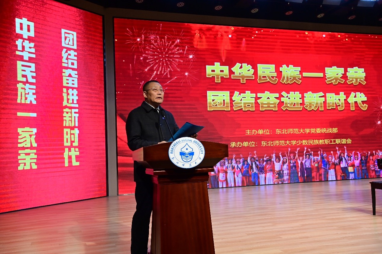 王延为音乐会致辞。他指出,我国是统一的多民族国家,中华民族多元一体是祖先留给我们的宝贵遗产,也是中国特色社会主义的重要一部分。回眸历史,各族人民始终像石榴籽一样紧紧抱在一起,形成了“你中有我、我中有你,谁也离不开谁的多元一体格局”,共同书写了中华民族发展的辉煌篇章。他强调,铸牢中华民族共同体意识是新时代党的民族工作的主线,也是实现中华民族伟大复兴的必然要求。高校是培养社会主义建设者和接班人的重要阵地,工作中,我校始终坚持“尊重多元,强化一体”的原则,积极开展丰富多彩、特色鲜明的民族团结活动,引导各民族师生用自己民族的角度、方式和特色,诠释休戚相关、荣辱与共的生活理想,不断增强“五个认同”,即对伟大祖国、中华民族、中华文化、中国共产党、中国特色社会主义的认同感和归属感。