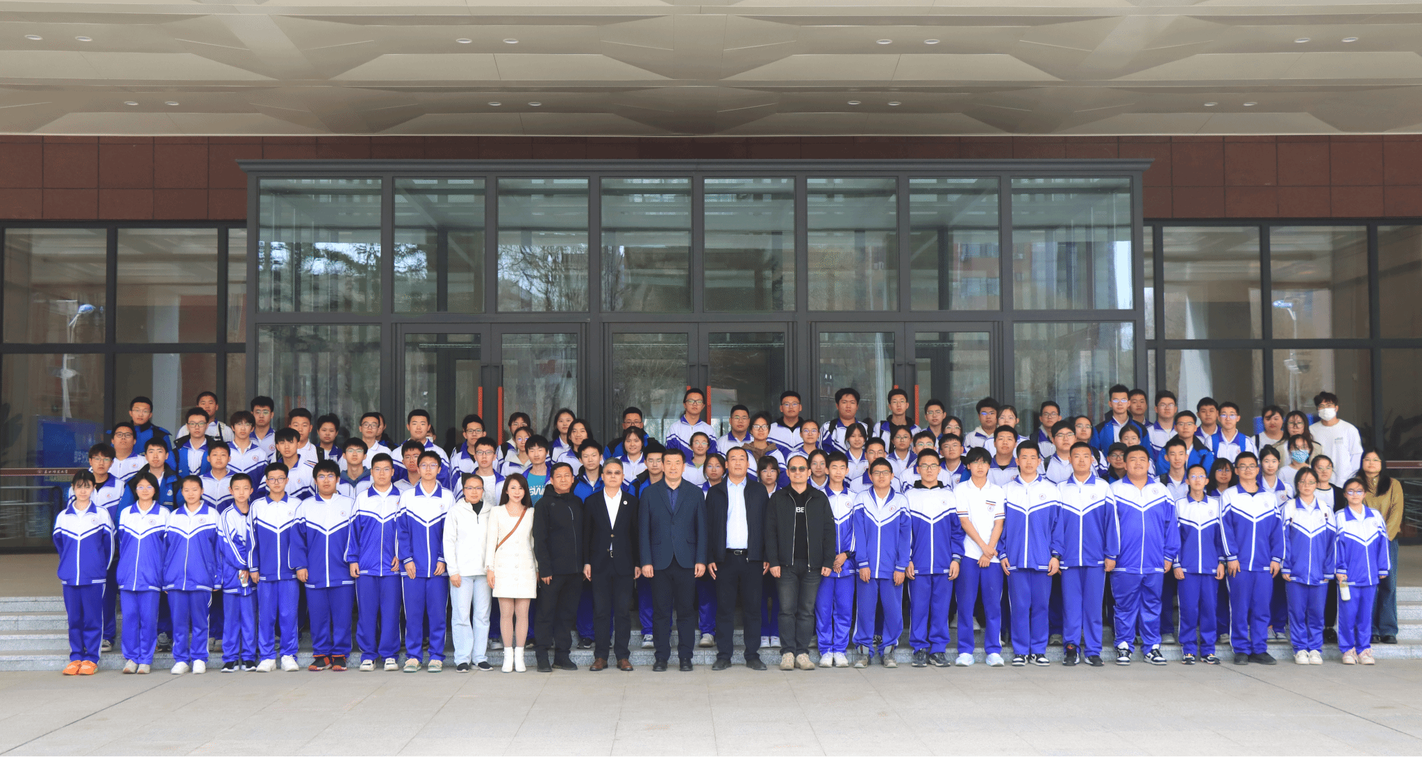 校长徐海阳对长春市第六中学师生的到来表示欢迎,希望通过本次大中衔接拓展课程更好激发学生的学习动力和创新精神,预祝同学们在活动中学有所得、闻有所获,并与师生亲切合影。